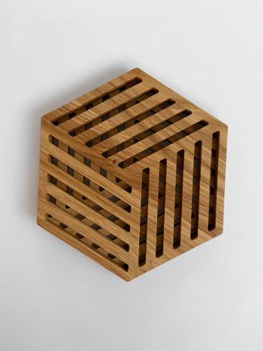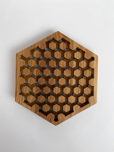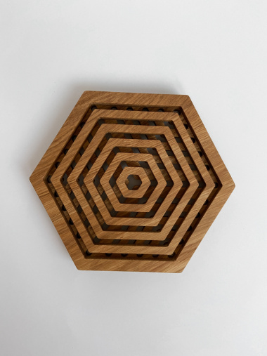 "Резная подставка под горячее шестиугольной формы из древесины американского дуба.