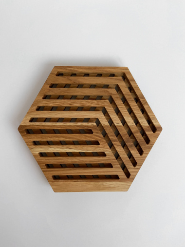 "Резная подставка под горячее шестиугольной формы из древесины американского дуба.
